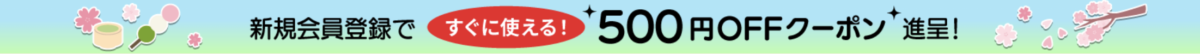 新規会員登録ですぐに使える500円オフクーポンプレゼント