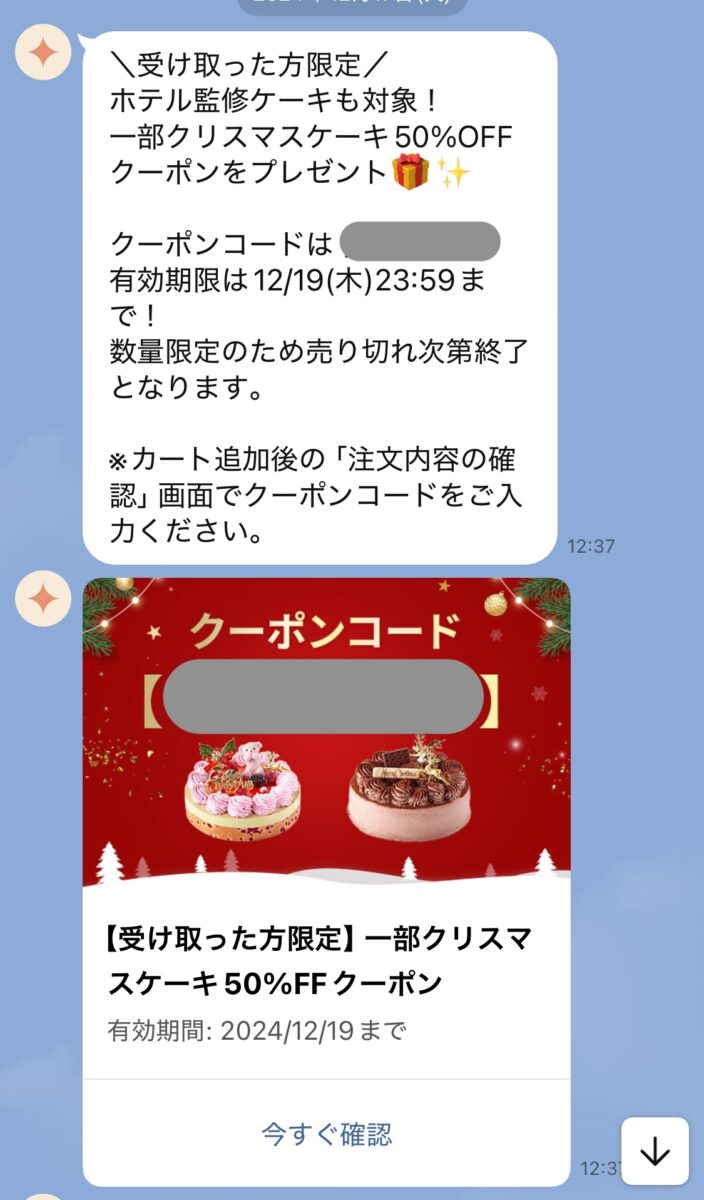 Cake.jp(ケーキジェーピー)では、LINEのお友達限定でクーポンが配信される場合があります。