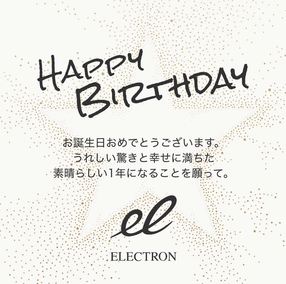 ELECTRON(エレクトロン)公式サイトでは、会員登録時にお誕生日を登録するとお誕生月に500オフクーポンをプレゼントしてもらえます。