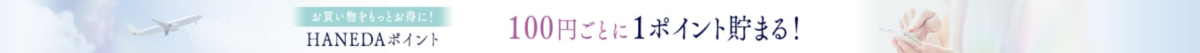 | HANEDA Shopping(オンライン) | 税抜100円ごとに1ポイント(=1%) | 商品発送完了から約2週間後 | 送料・手数料は対象外 |