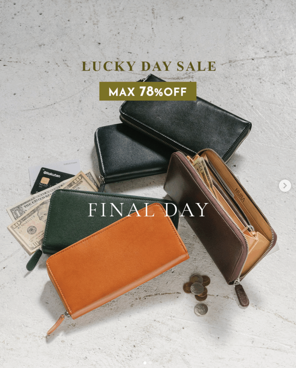 MURA(ムラ)公式サイトでは、『天赦日』や『一粒万倍日』などの開運日とされる日にラッキーデーセールを行なっている場合があります。