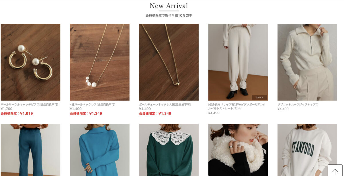 Re:EDIT(リエディ)公式サイトでは、会員限定で新作アイテムを10%オフで購入する事が出来ます。