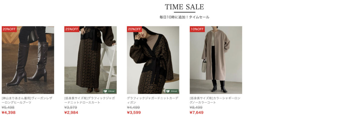 Re:EDIT(リエディ)公式サイトでは、毎日10時にタイムセールアイテムが追加されます。