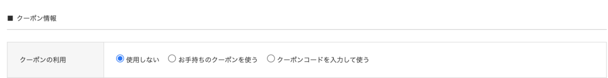 - ご注文情報入力画面で個人情報を確認し、クーポン欄の内容の『お手持ちのクーポンを使う』または『クーポンコードを入力して使う』を選択する